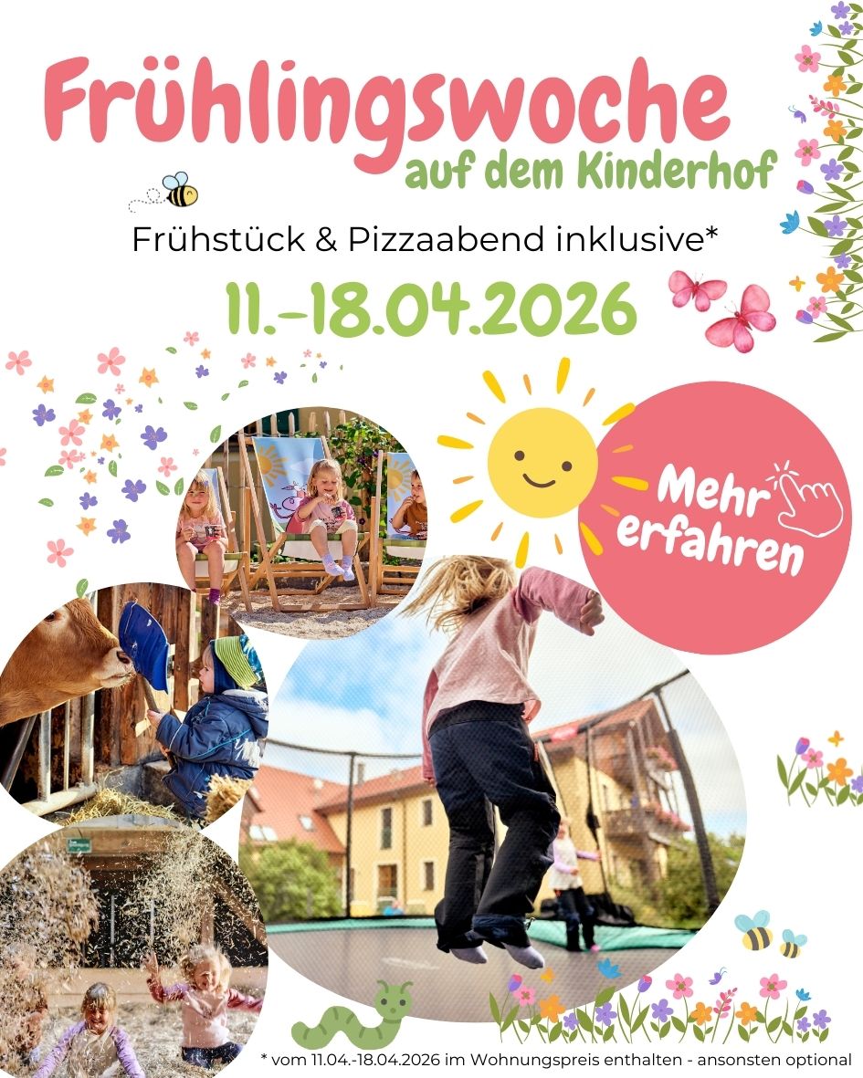 Der Hof wird ruhiger, die Wiesen leuchten frischgrün, die Tiere sind draußen – und eure Kinder haben jede Menge Platz zum Entdecken.
